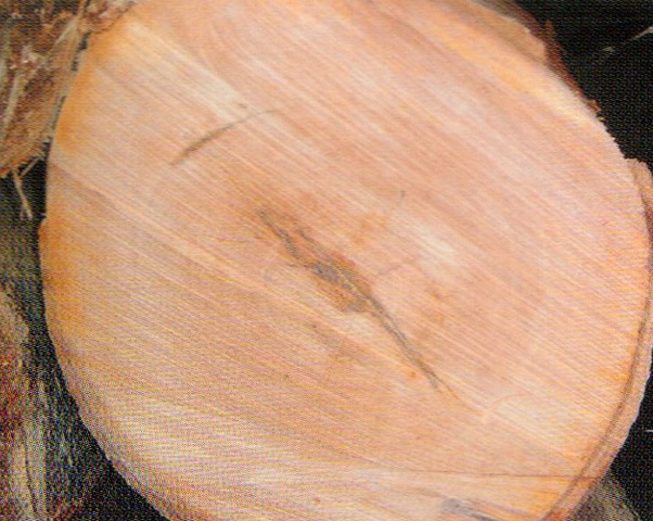 具光澤;略有蠟質感;具有持續(xù)碘氣味。紋理直至略交錯;結構細而勻;質地中至重硬;強度高。加工容易,切面光滑;車旋、油漆、膠黏性能好;難于釘釘,須先鉆孔。耐腐。干燥困難,易端裂和面裂。氣干密度0.74 ~ 0.84 g/cm3。